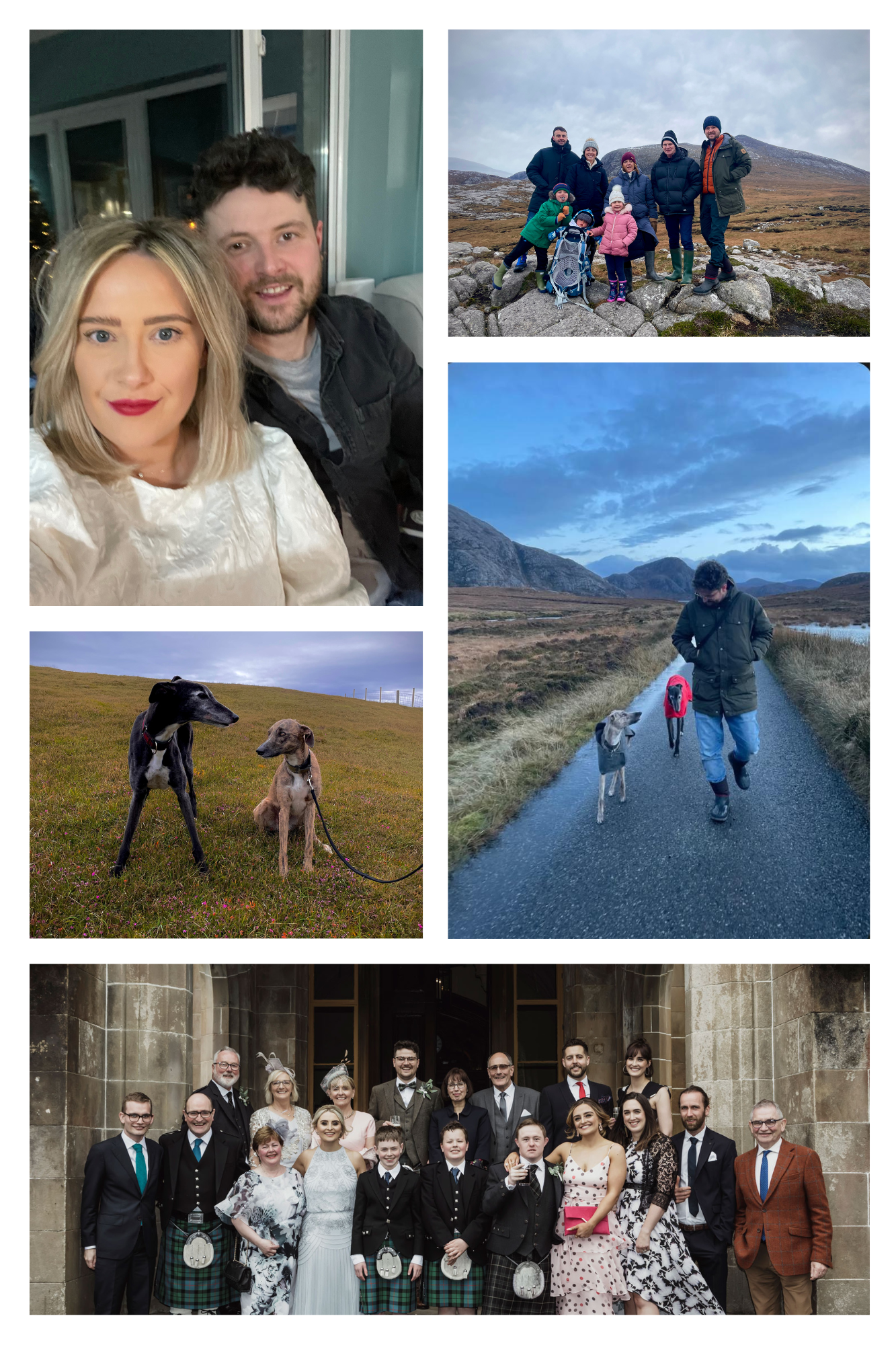 Now we love spending time outdoors and have taken up kayaking and wild swimming. We walk our dogs, Penny (a wild wee lurcher) and Finn (a sleepy old greyhound), and seek out new and interesting places. Mostly though, we love spending time with friends and family – whether they are here on the island or visiting from the mainland.